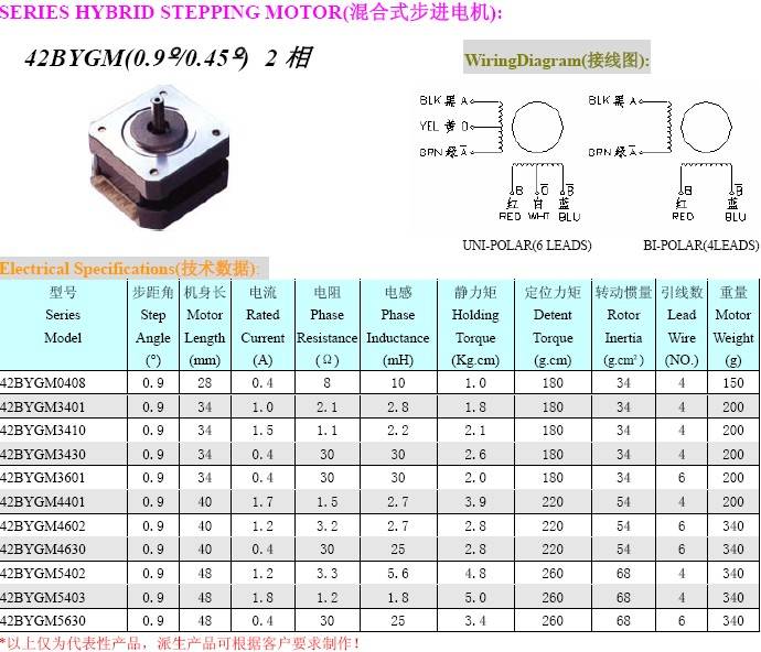 步距角为0.9°,11种型号。